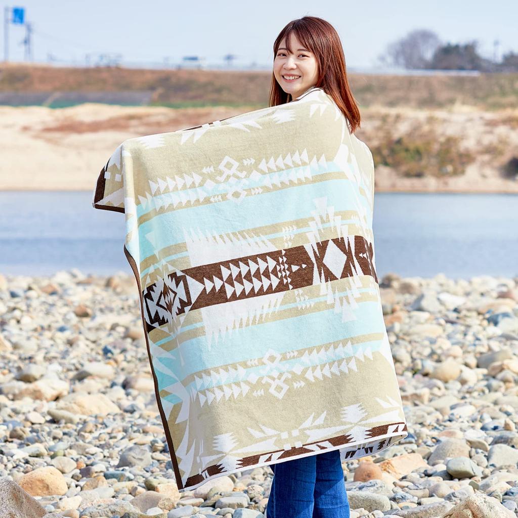 Hagiwara "Rapha" Towel Blanket, Approx. 100 x 178 cm, 100% Cotton, Outdoor Beach Towel, Thick, Large, Native American Pattern