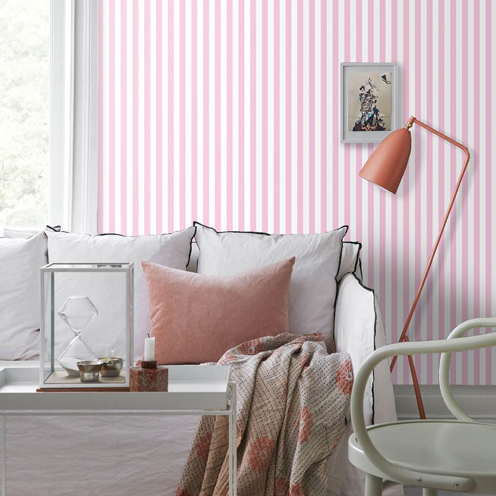 Kabegami Kakumei Wallpaper, Peel-and-Stick Fleece Wallpaper, Pastel Stripe Border, Made in Japan, 46cm Wide x 10m Roll (TWF1001/PINK)