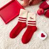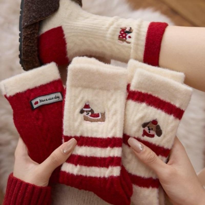 Australian Wool Socks - Women's Winter Thickened and Warm Padded Red Christmas Stockings with Embroidered Puppies for Sleeping