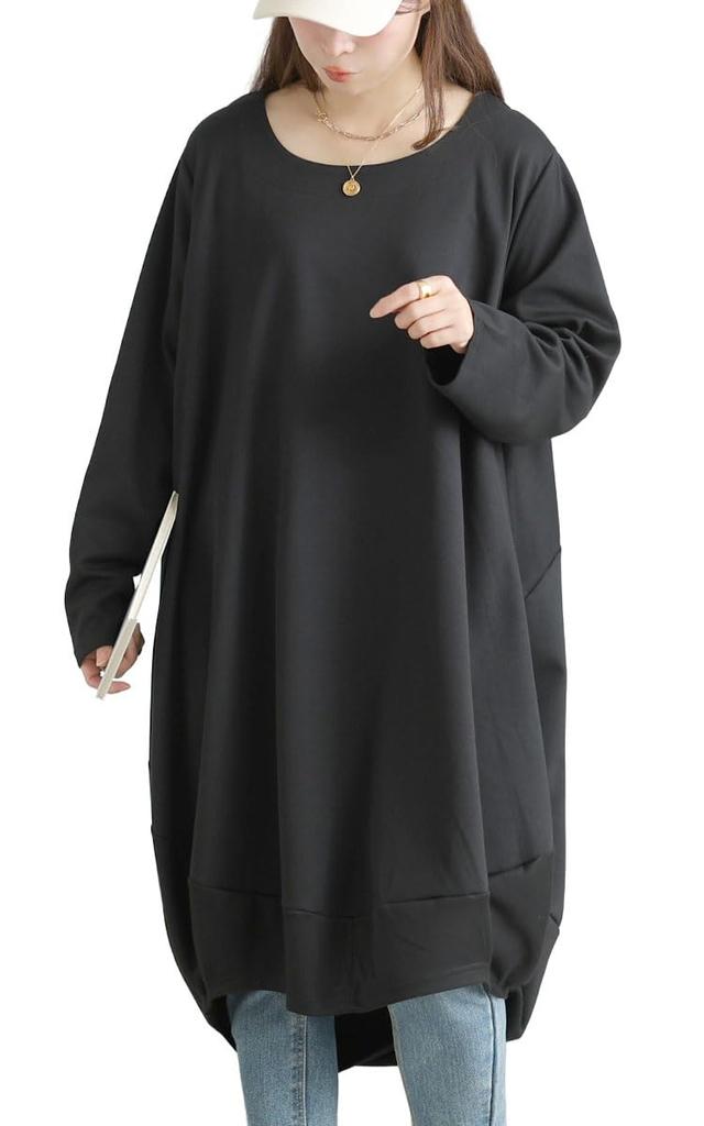 Gold Japan Plus Size Cocoon Long Long Front and Back Winter Black Women's Dress, Sleeves, Oversized, Length, Adjustment, Roomy, Outfit, Autumn/Winter,