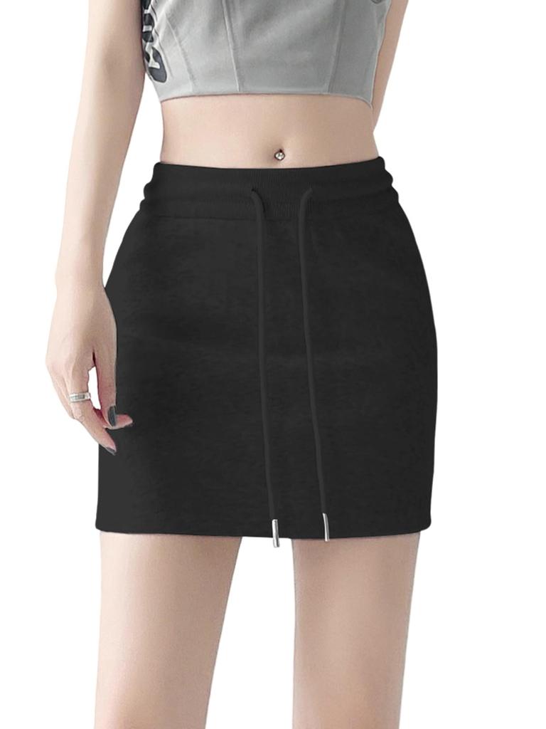 Syvent 12F018 Black Summer Sweat Skirt with Elastic Solid Mini Tight Available in 6 Colors Waist, Cotton, Skirt,