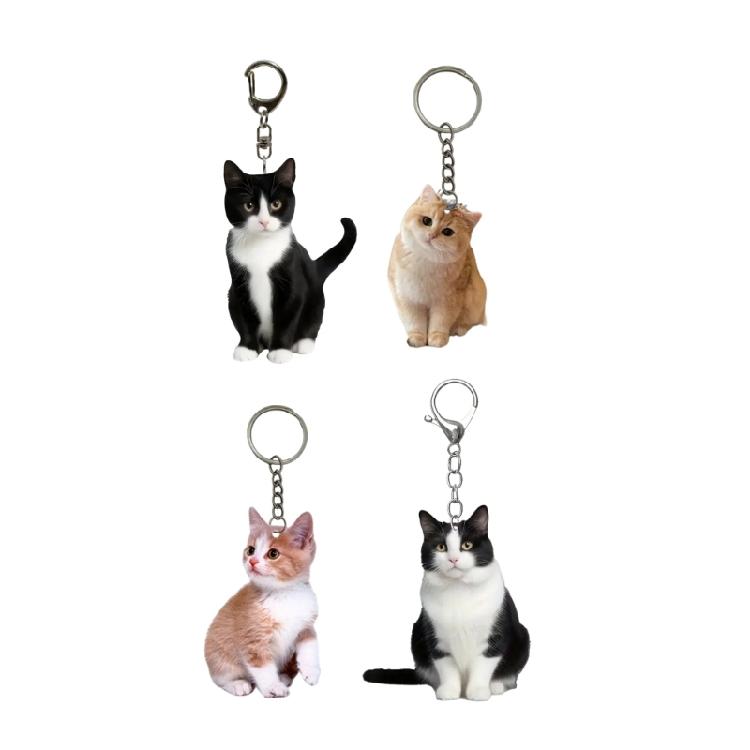 4Piece Set Fashionable Cat Keychain Collection Acrylic Charm Portable Key Accessory with Cat Pattern for Various Ages