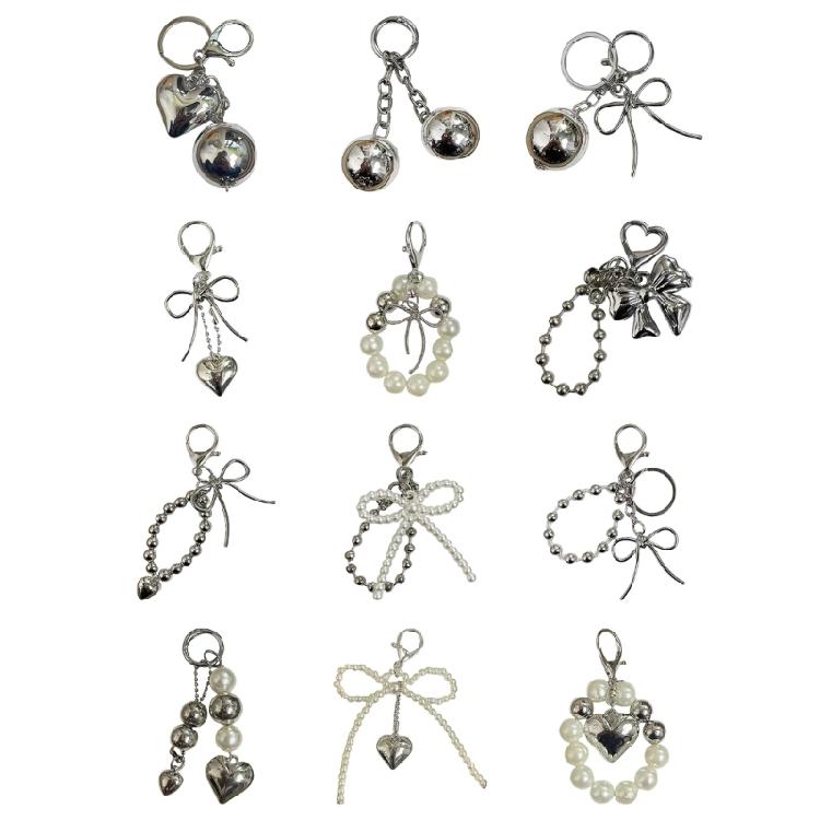 Fashion Heart Bowknot Beaded Keychain Pendant Backpack Handbag Charm Pendant Hangings Decoration Sweet Pendant Gift