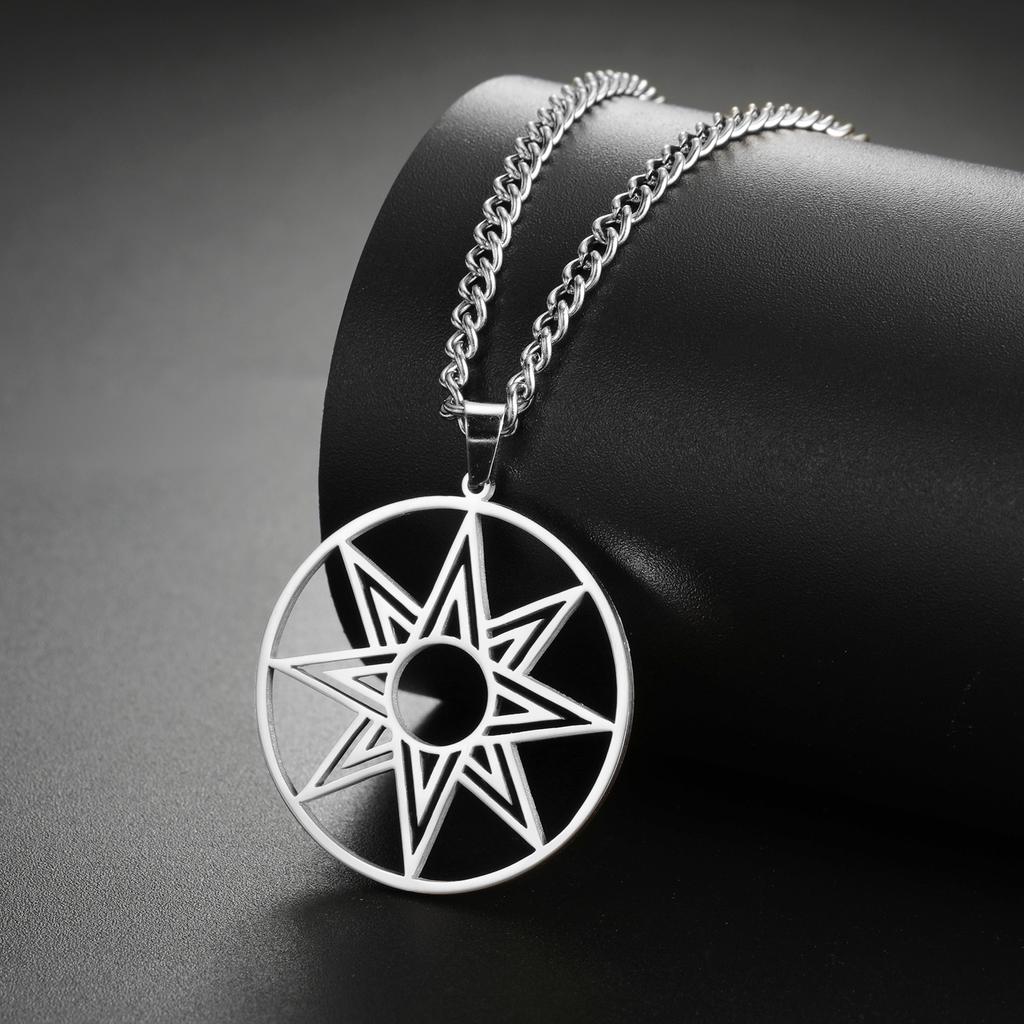 Large Octagram Necklace Stainless Steel 8 Point Star of Ishtar Innana Venus Charm Pendant Hellenic Jewelry