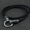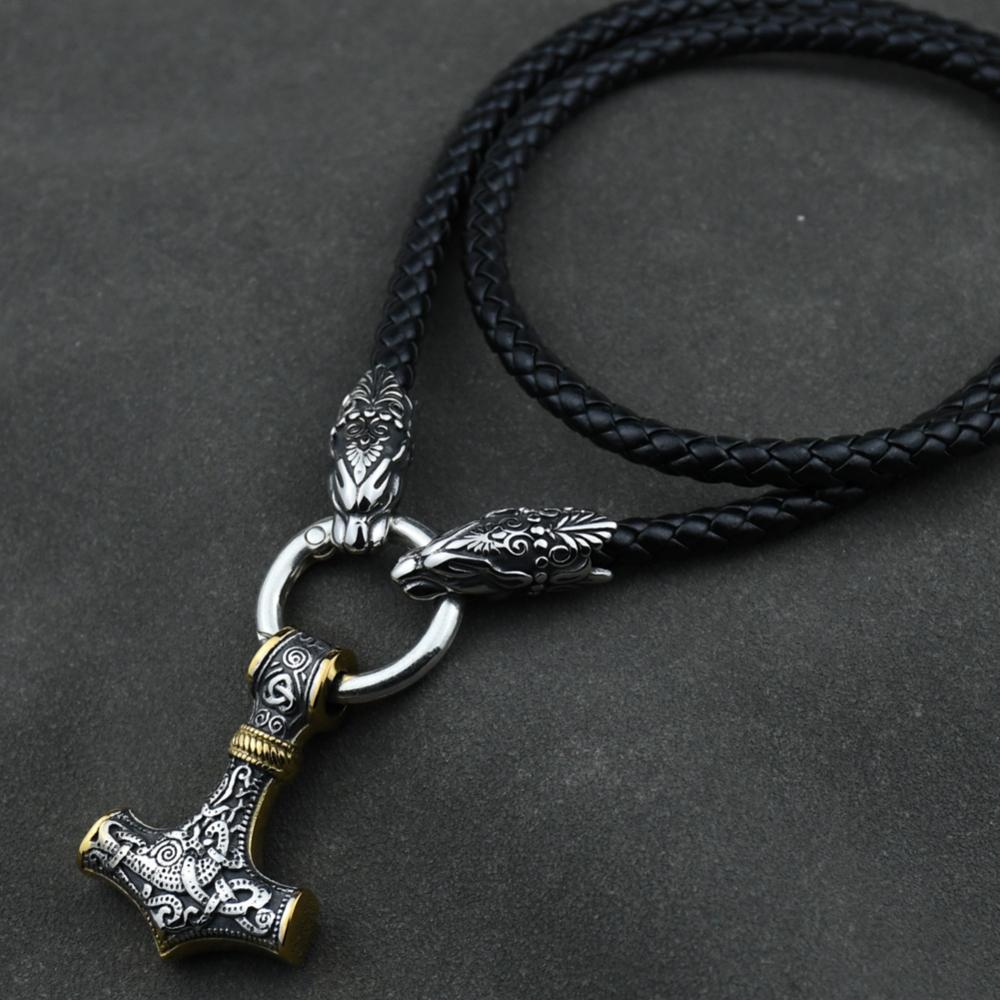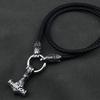 Men stainless steel Wolf head Norse Viking amulet Thor hammer pendant necklace with leather chain