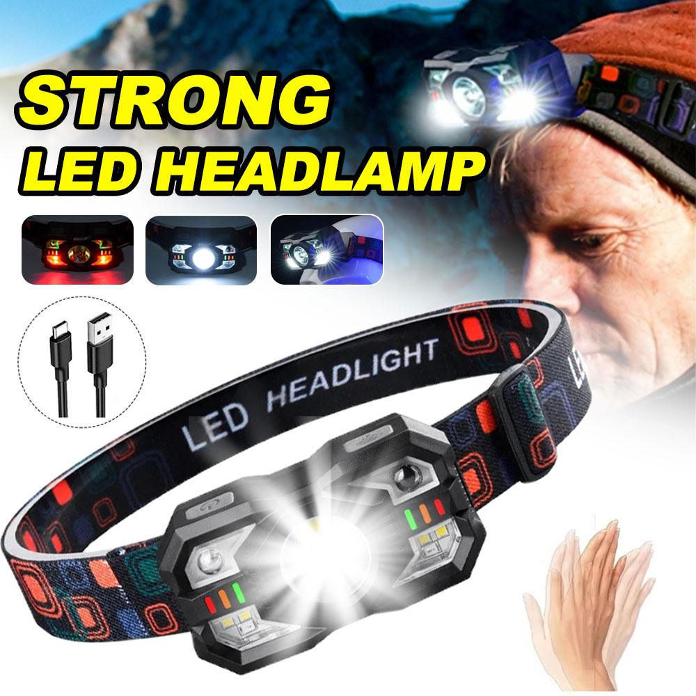 Starke Leuchte Stirnlampe Taschenlampe Wiederaufladbare Stirnlampe Verstellbare Stirnlampe mit Bewegungssensor Rotes Licht für Camping Radfahren Wandern