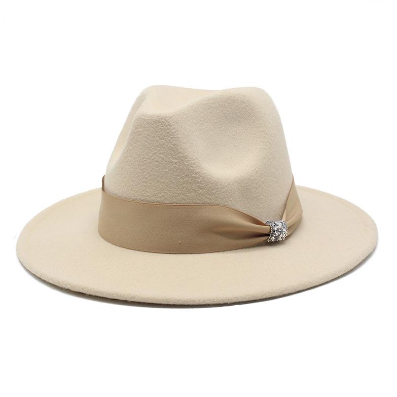 British Woolen Hat Women'S Spring Wide Brim Flat Top Internet Celebrity French Top Hat Flat Edge Imitation Wool Camel Jazz Hat