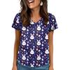 Damen V-Ausschnitt Oster-Print Kurzarm Taschen-Top mit Seitenschlitz