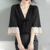 ZANZEA Women Casual V-Neck Lace Splice 3/4 Sleeve Blouse