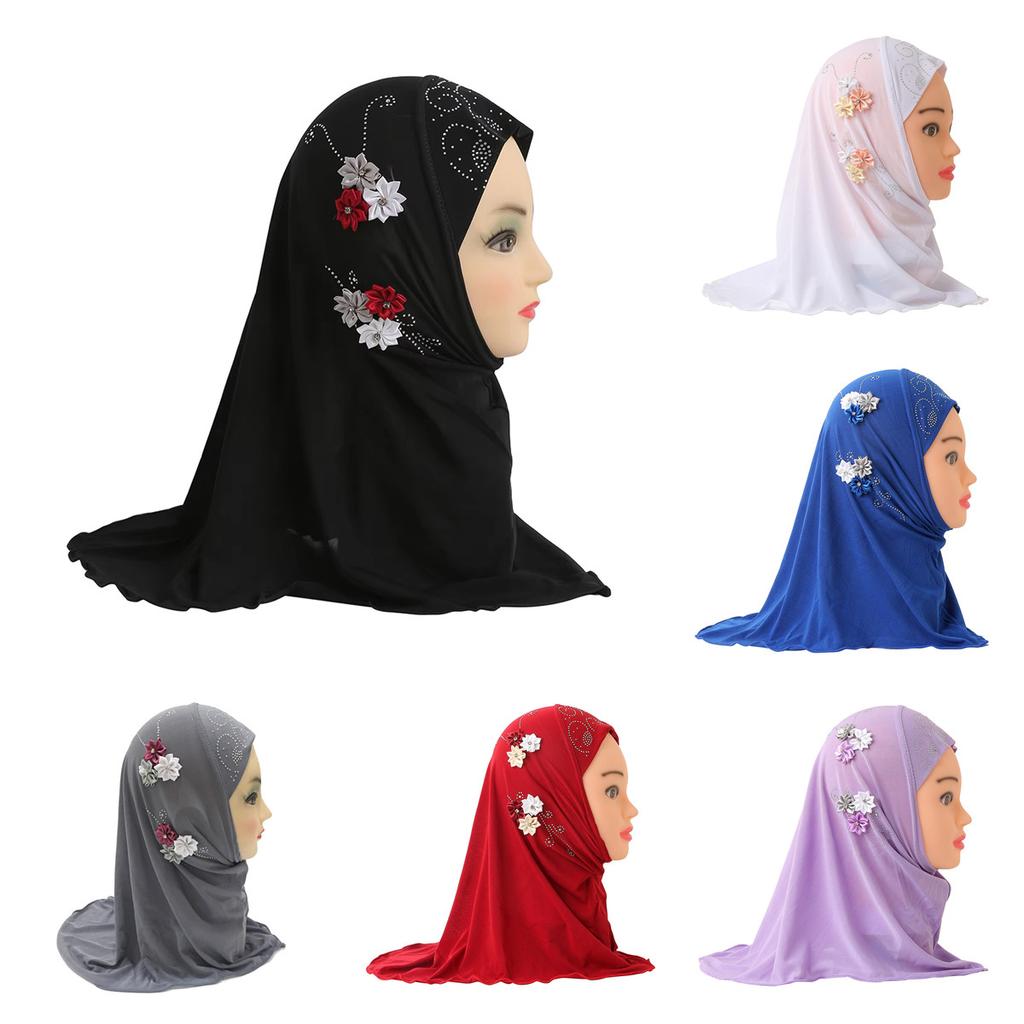 Fit 2-5 years old small girl cute hijab cap with flower beautiful muslim scarf islamic headscarf hat amira pull on headwrap