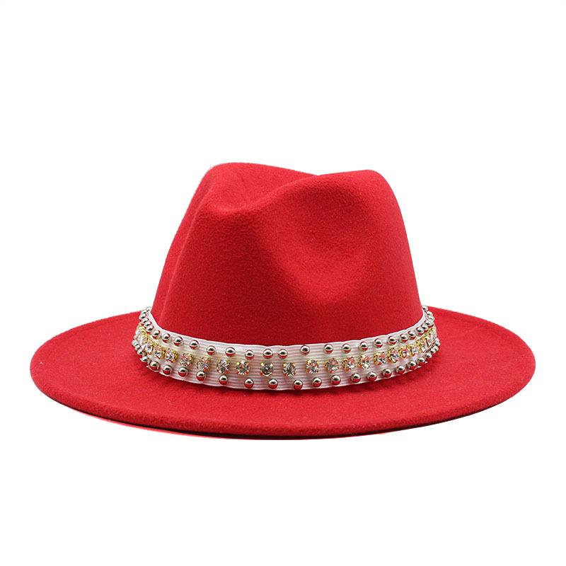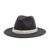 Diamond Pearl Woolen Top Hat Gentleman'S Jazz Hat Flat-Brimmed Cornice Hat