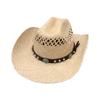 Western Cowboy Hat, Travel Sunshade And Sunscreen Hat, Raffia Hand-Woven Crimped Hat