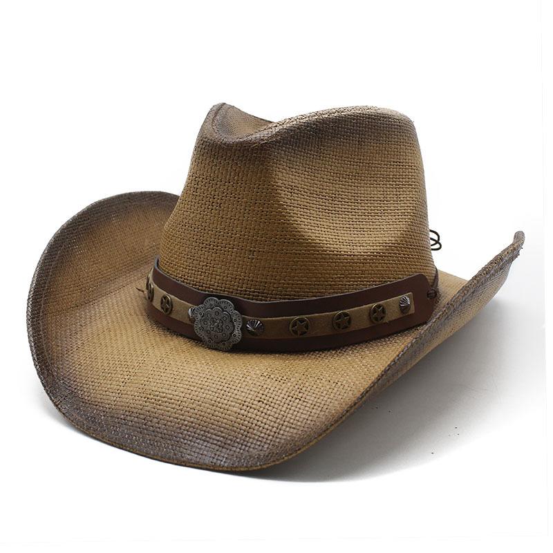 Vintage Spray Paint Cowboy Hat Men'S And Women'S Big Brim Western Horseback Riding Sunscreen Straw Hat Beach Hat
