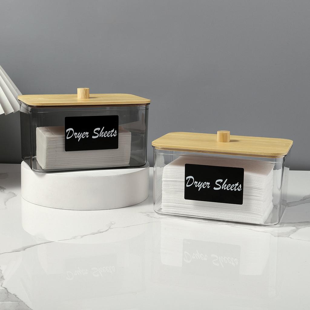 Acryl Trocknertuchhalter mit Deckel, Klarer Behälter für Wäscheblätter mit Etiketten, Aufbewahrung für Waschmittelpods zur Organisation der Waschküche