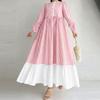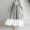 ZANZEA Women Stripe Print Loose Casual Long Sleeve Splice Long Dress