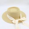 Hat Ladies Trendy Streamer Straw Hat Summer Beach Outing Flat Top Top Hat Sun Protection British Sun Hat