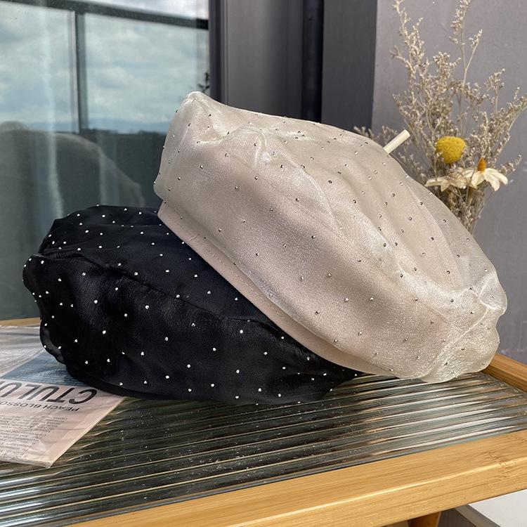 Niche Rhinestone Beret Ladies Spring And Autumn Lace Painter Hat Versatile Tide Octagonal Hat