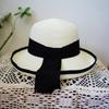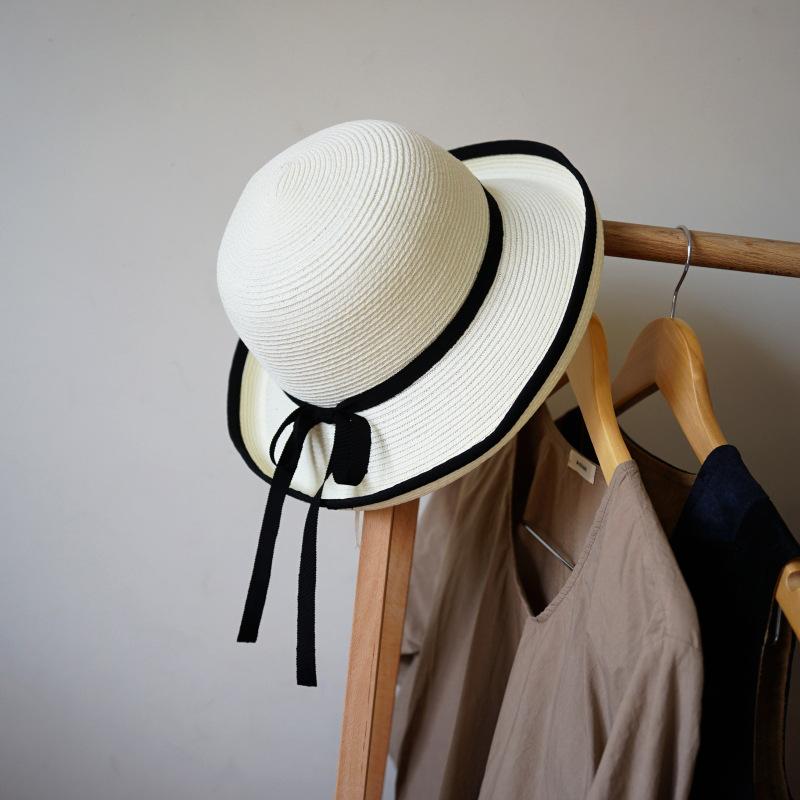 French Elegant Japanese White Black Edge Flanged Basin Hat Women'S Summer Sunshade Sunscreen Beach Resort Straw Hat Small Fresh