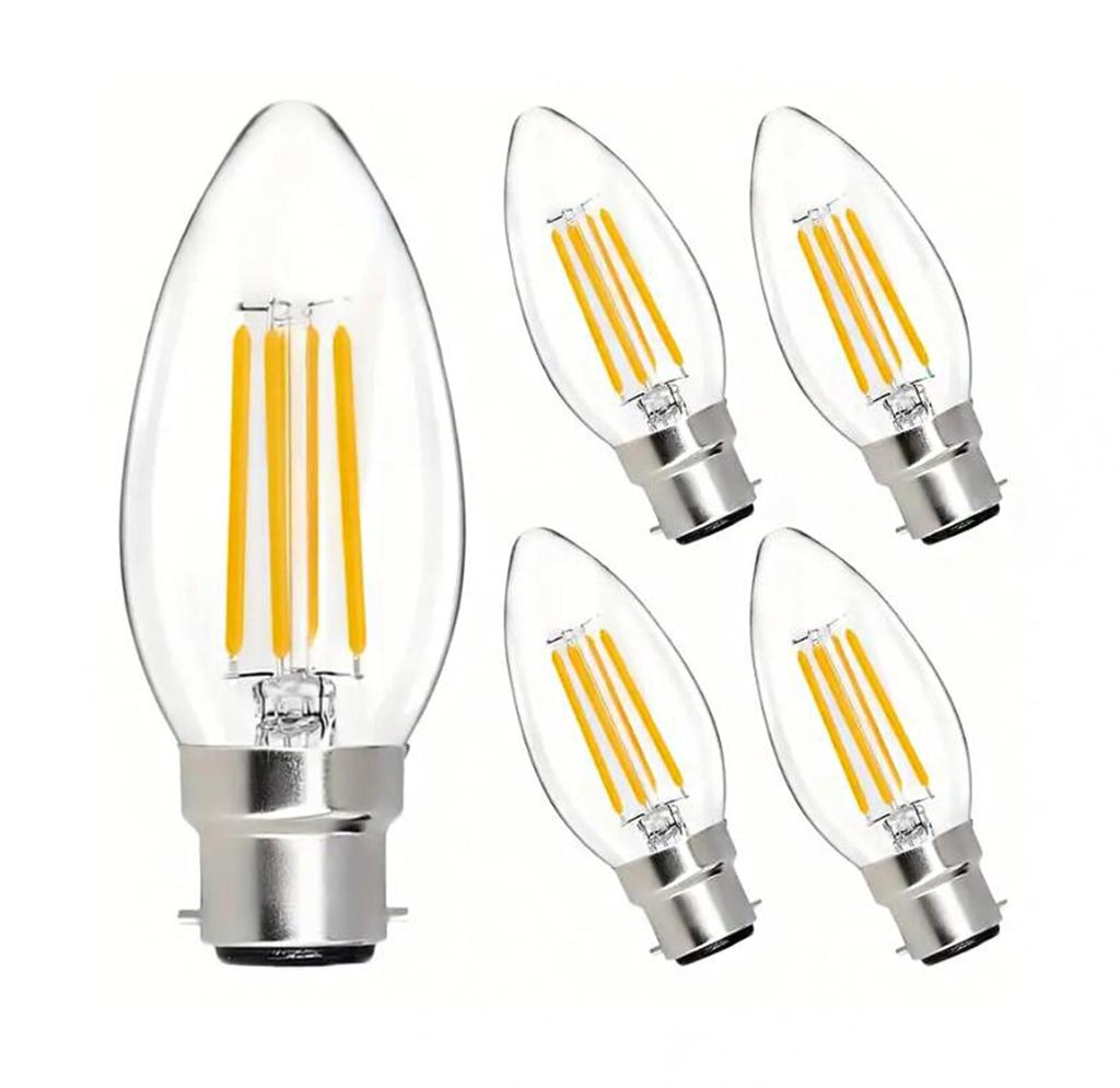 Excellent Performance: Our B22 Bayonet C35 LED Filament Bulb, 4W equivalent to a standard 40W bulb, uses high-quality, high-brightness LED lamp beads, provides 360-degree light, and is 10-15% more efficient than standard bulbs. The high-quality PC lampshade provides strong light transmittance, bright, uniform light, efficient heat dissipation, and a long lifespan. Excellent Performance (Non-Dimmable)