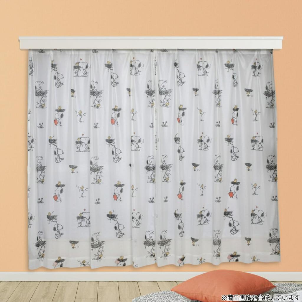 Peanuts Snoopy UV-Cut Mirror Lace Curtains, Set of 2, 100cm Wide x 198cm Long, KO-27, Character Snoopy, Washable, Heat-Shielding, Mirror Lace