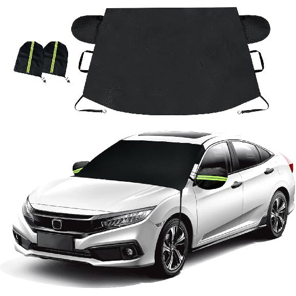 Car Windshield Cover for Ice and Snow, Frost Removal Wiper Protector, All Weather Waterproof Sunshade Snow Cover with Side Mirrors Cover Fits Most