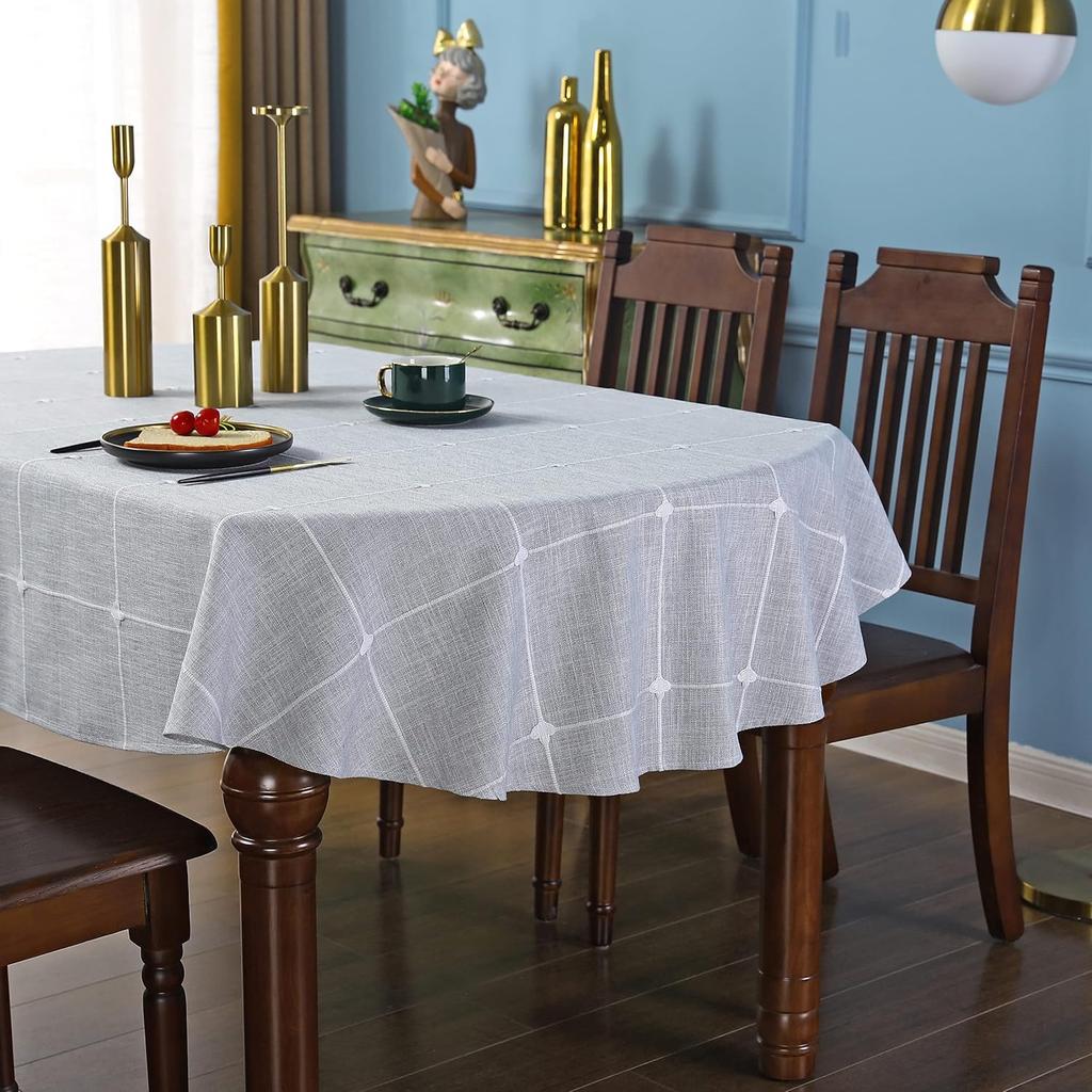 Lattice Oval Tablecloth Rustic Embroidery Cotton Linen Fabric Grey Checkered Table Cover Tablecloths for Kitchen Dining Party Tabletop Decoration 60