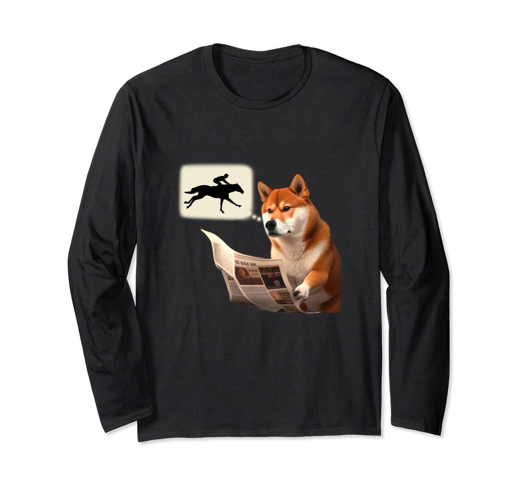 Pferderennen T-Shirt, Shiba Inu, Lustiges T-Shirt, Pferderennen, Reiten, Herren, Lustige Merchandise-Artikel, Erwachsener, Langarm-T-Shirt