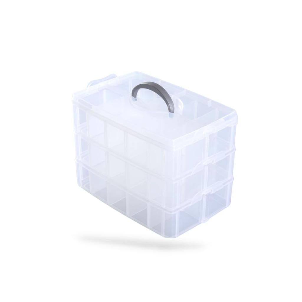 RegiProb Clear Storage Case, 3 Tiers, Toys, Small Items, Parts, Grid, 32cm x 18cm x 24.5cm (Large)