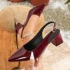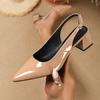 Spitze Zehensandalen aus lackiertem Leder Damen Dicke hohe Absätze Slingback Sommerschuhe Frau Gladiator Sandalen