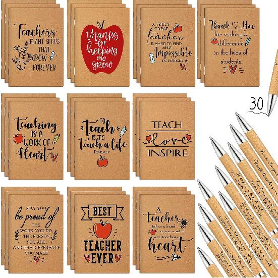 Appreciation Gifts: these teacher appreciation kraft notebooks and ballpoint pens use some thankful quotes and sincere blessings, matching with teaching elements, such as apples, pencils, hearts to express the depth of your gratitude for teachers
