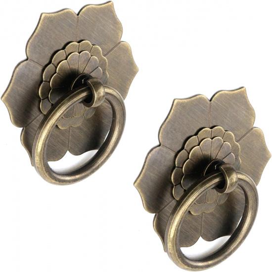 Drop Ring Knobs Antique Bronze Tone Ring Pulls Flower Shape Dresser Drawer Cabinet Pulls - 2pcs
