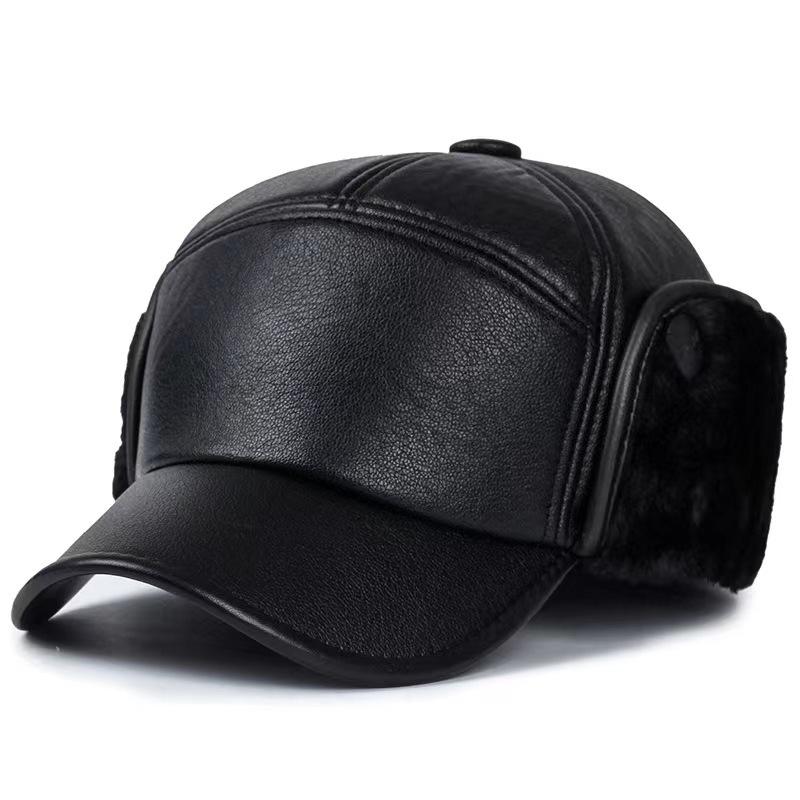 Thickened Cold-Proof and Warm PU Leather Baseball Cap for Middle-Aged and Elderly People (Ear-Protected)