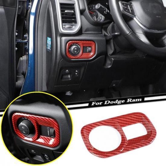 For 19-2024 Dodge RAM 1500 Red Carbon Fiber Interior Headlight Switch Cover Trim