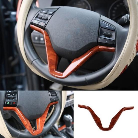 For Hyundai Tucson 2016-2021 Peach Wood Grain Steering Wheel U Type Cover Trim