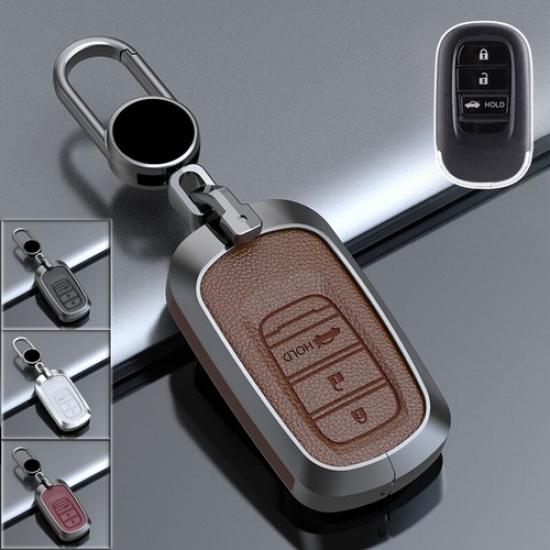 Zinc Alloy Leather Car Remote Key Fob Case Cover For Honda Civic Vezel Accord