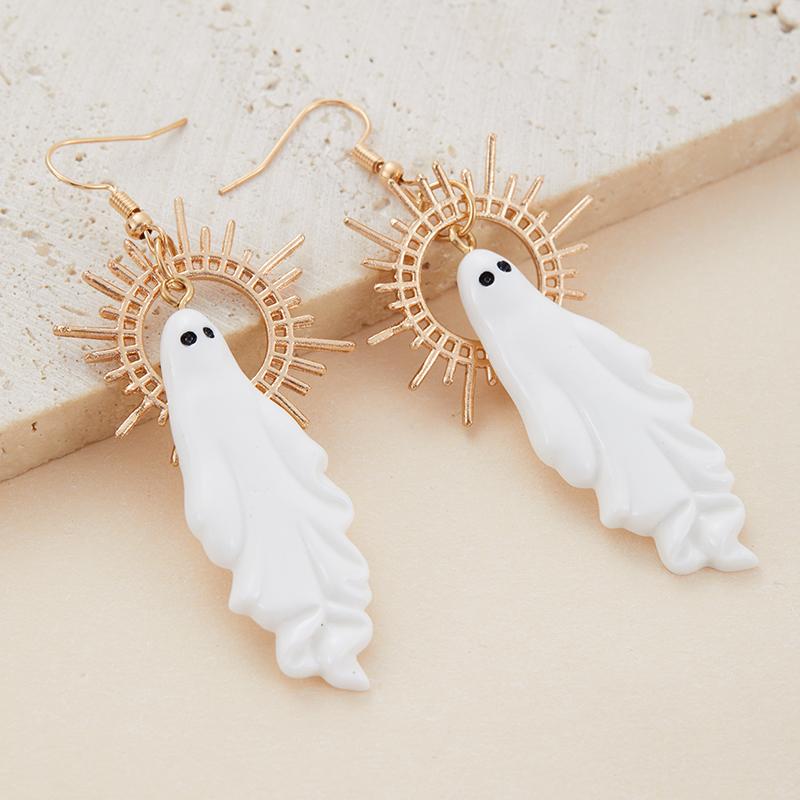Personalized and Creative Halloween Ghost Pendant Earrings, Suitable for Women's Holiday Accessories, Anniversary Gift for Wives