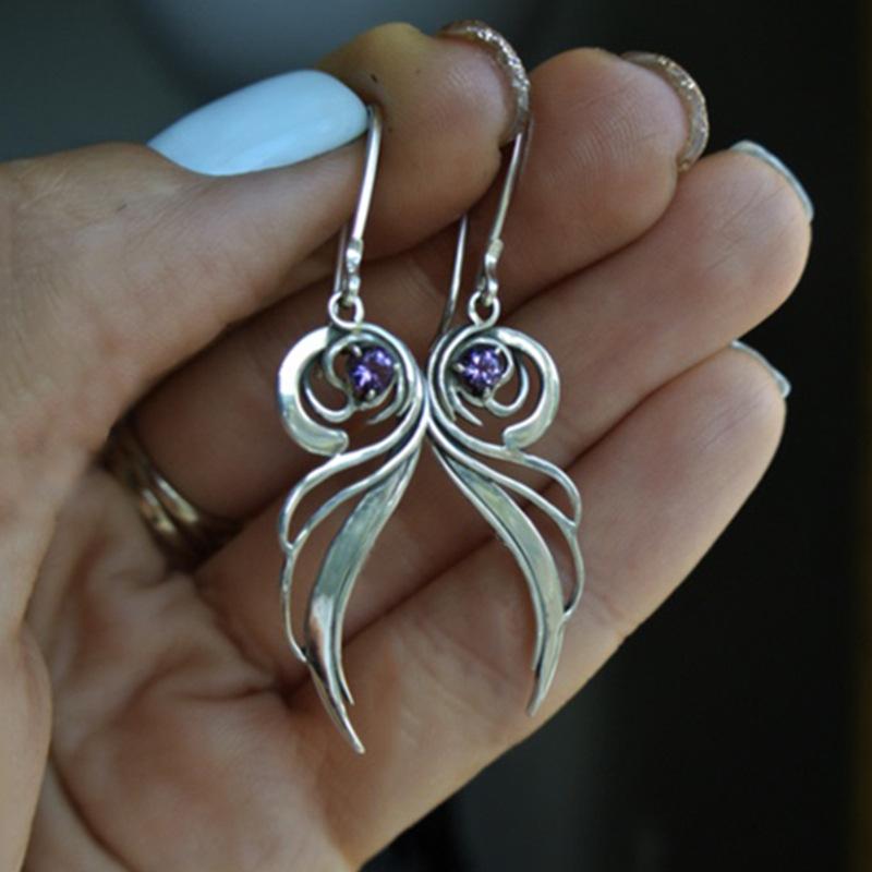 Vintage Silberfarben Metall Schnitzmuster Rund mit Lila Steinen Inlay Hängeohrringe Schmuck