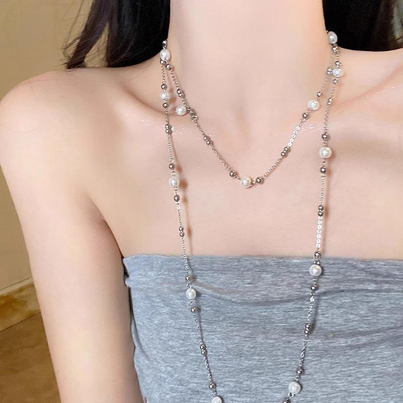 Temperament Nischen Design Exquisite Lange Imitation Perlenkette Halskette Pulloverkette Trendig Hochzeitsparty Süßer Schmuck Geschenk