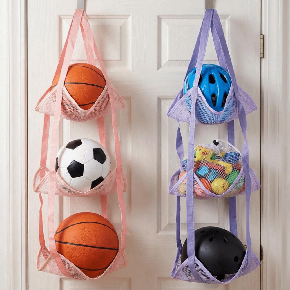 Wall Mounted Ball Storage Hanging Bag Large Capacity 3/4 Layers Basketball Storage Bag Foldable Durable