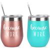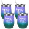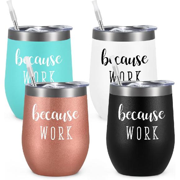 Qtencas Coworker Gifts, 4 Pack because WORK Stainless Steel Wine Tumbler, Christmas Gifts for Coworkers Office Staff Employees, Funny Office Gifts