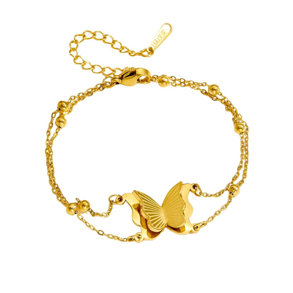 Punk Beads Chain Link Bracelet Female Gold Color Stainless Steel Animal Butterfly Charm Bracelets for Women Jewelry Gift 2025