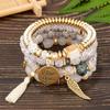 DIEZI Multicolor Acrylic Crystal Beads Strand Bracelets For Women Girls Men Tassel Wing Elastic Rope Bracelet Pulseira Feminina