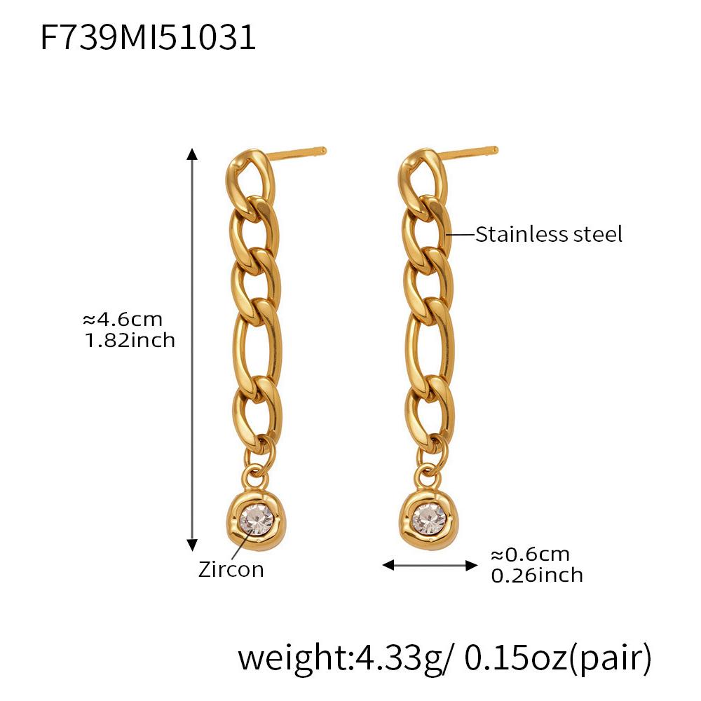 Chain Dangle Earrings In Stainless Steel 18K Gold Plated Ear Studs With Zircon Pendant Statement CZ Charm Stud Earring for Women