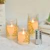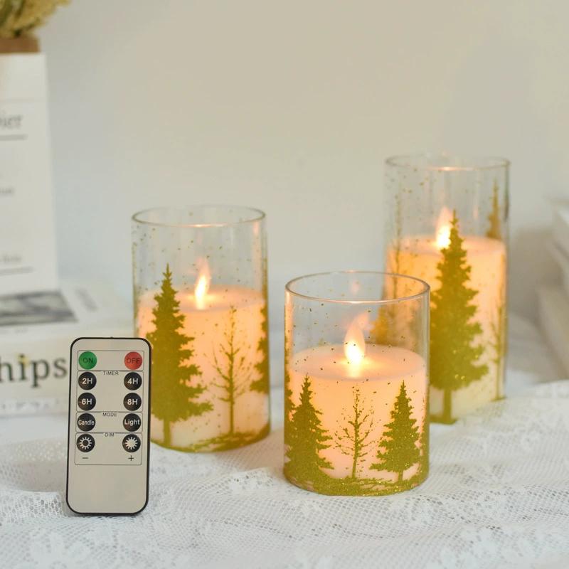 3er-Pack Acryl-LED-Kerzen mit Aufkleber von Ästen und Kiefern, Elektronische Kerzen mit Fernbedienung für Partyartikel-Dekoration