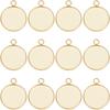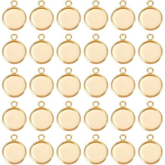 Beebeecraft 1 Box 40Pcs Flat Round Charm 24K Gold Plated Brass 12mm Blank Bezel Tray Charms Cabochon Settings with Loop for Jewelry Making