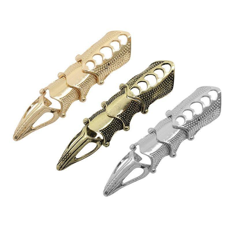 Punk Rock Scroll Joint Armor Metal Knuckles Full Finger Claw Rings Unisex Halloween Adjustable Ring Party Accessories