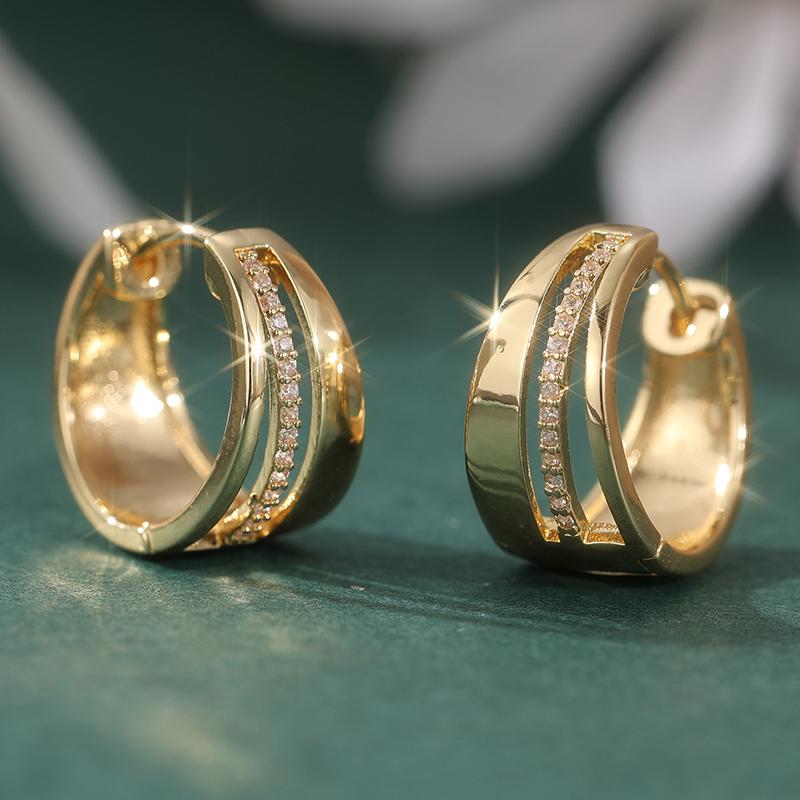 Synthetic Zirconia Golden Plated Geometry Hoop Earring for Women's Classic Exquisite Banquet Wedding Jewelry Accessories