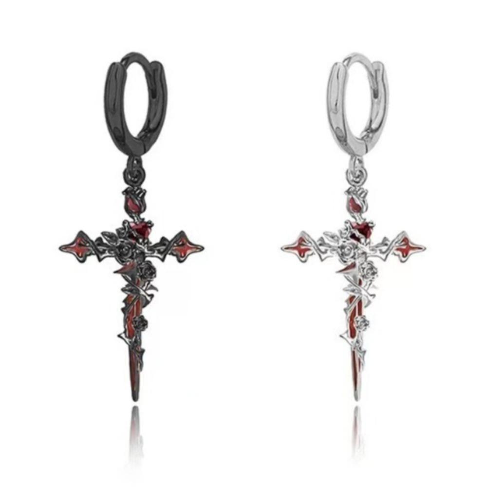 Punk Dornrose Kreuz Ohrringe Süß Cool Dunkler Stil Ohrring Anhänger Halskette Party Halloween Schmuck