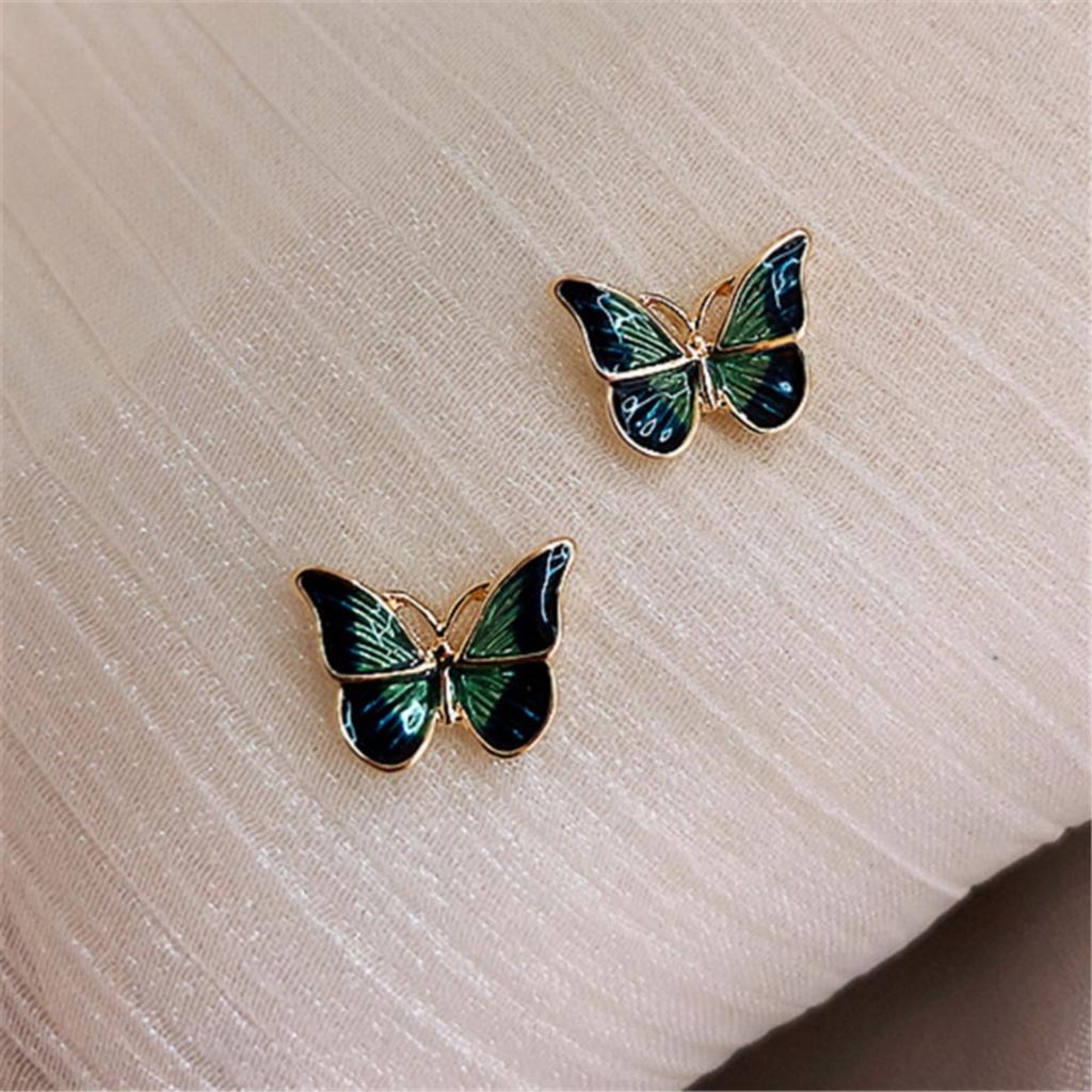 Elegant Gradient Green Enamel Butterfly Stud Earrings For Women Men Simple Cute Flying Butterfly Animal Earring Wedding Jewelry