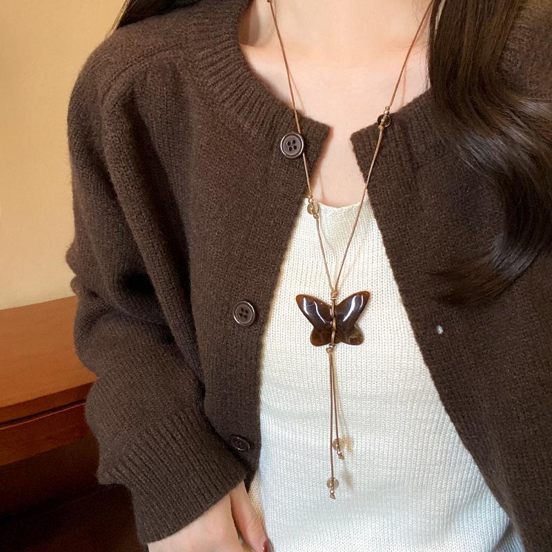 New Chinese Zen butterfly pendant necklace women's light luxury design sweater chain simple item decoration